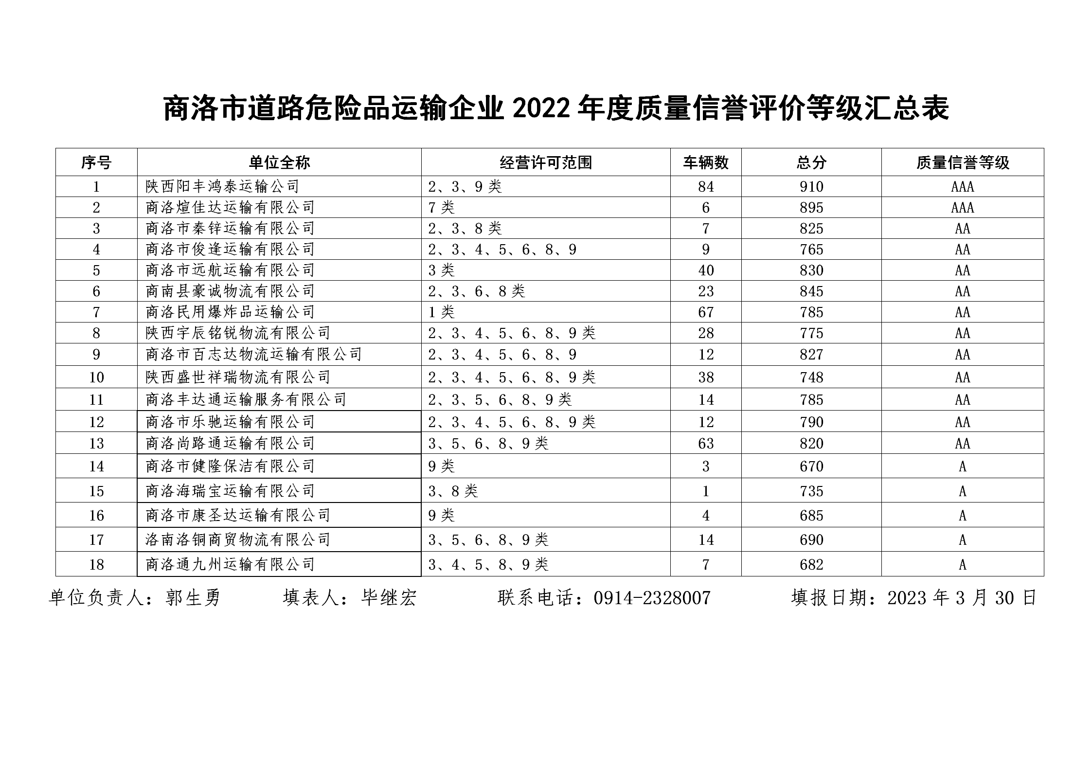 365bet世界杯欢迎您_365bet娱乐登录_365batapp道路危险品运输企业2022年度质量信誉评价等级汇总表